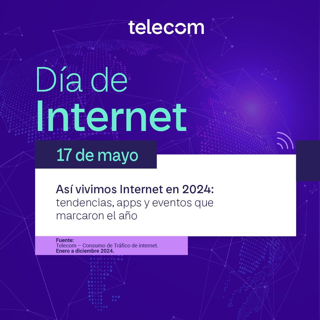¡Hoy, 17 de mayo, celebramos el Día de Internet! Y como cada año, me gusta compartir con ustedes algunos datos y tendencias que reflejan cómo usamos. Telecom Argentina compartió un informe con los datos más destacados sobre el uso de conectividad en 2024. Entre los datos más llamativos, se puede ver que los momentos de mayor tráfico en la red se concentraron entre las 21 y las 23 horas, marcando una clara tendencia en los hábitos digitales de los argentinos.