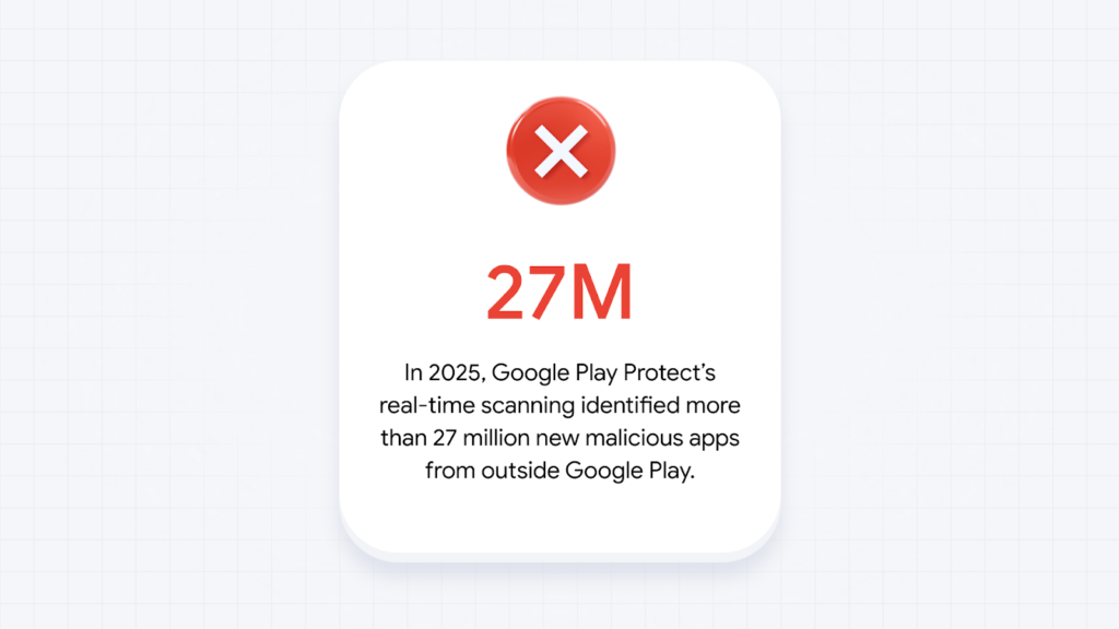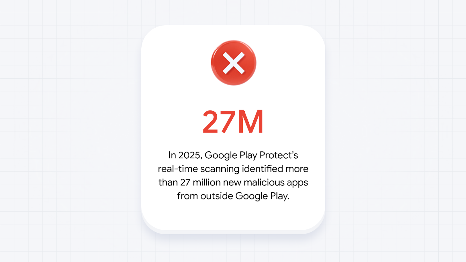 La protección antifraude mejorada se activó en 185 mercados, cubriendo más de 2.800 millones de dispositivos Android. Esta función analiza permisos sensibles cuando el usuario intenta instalar apps desde navegadores o mensajería (sideloading) y bloquea automáticamente aquellas con potencial de fraude financiero.